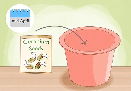 Start geraniums from seed indoors. Early to mid-April is usually standard. Once the seeds start to sprout, you can move them outdoors. Just make sure that the last frost of the season has already passed.