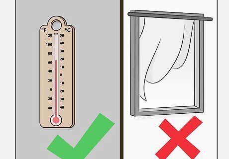 Place the plants in a warm, well-lit area. The temperature needs to be around 65–75 °F (18–24 °C) with either natural sunlight or artificial grow lights. If you are starting your seeds in winter, it is important that they are kept in a warm location. Keep them away from drafts, doors, and windows. Keep the heat on in your home. A south-facing window provides plenty of light for growing seedlings. If the weather is freezing, however, a window may be too cold. In this case, purchase fluorescent grow lights for your plants. Keep the plants under the lights for up to 15 hours a day.