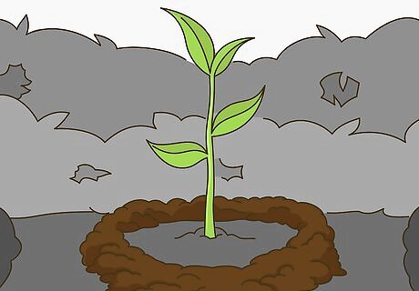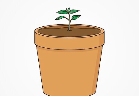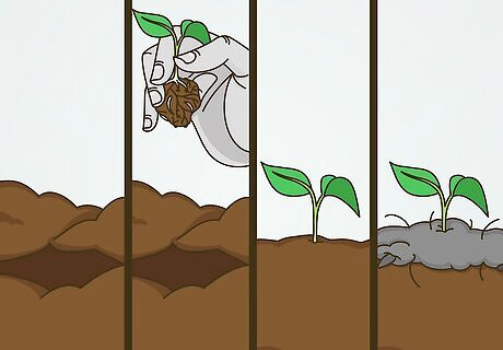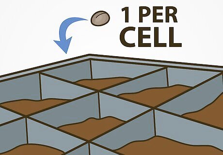 Bury 1 seed in each pot or cell of the tray. Place the seed on top of the soil, and press it down with your finger. Some seeds need to be deeper than others, so check the packet of your seeds for more information.