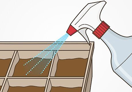 Spray the potting mix with water to keep it moist. A spray bottle will provide just enough water for your plants without giving them too much. Immediately after planting the seeds, spray the potting mix so that it is moist. Continue to spray the seedlings at least once a day or whenever the soil appears dry. To see if you need to water, try feeling the soil. If it feels dry and crumbly, spray the seedling with water.