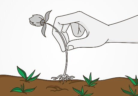 Remove any weeds that pop up in your garden. Look for weeds in your garden at least once a week. Ideally, however, if you see a weed, pull it or cut it out as soon as possible. Try to remove the roots if possible. Mulch can help prevent weeds from growing.