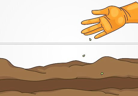 Spread seeds in the trench. Some vegetables, such as beans and okra, need 3-4 seeds per 1 foot (0.30 m). Others, such as lettuce or beets, may need up to 10 seeds per 1 foot (0.30 m). When you have finished the row, push soil over on top of the seeds with your hands. As always check your seed packet to see how many sees you need per 1 foot (0.30 m). Remeber that you can always thin out your seedlings once they begin to grow, so don't worry about starting with too many seeds.