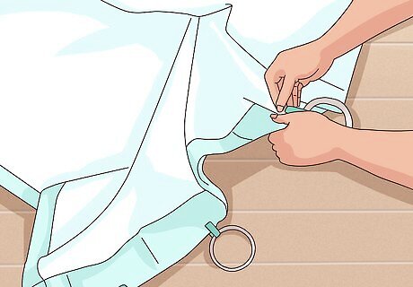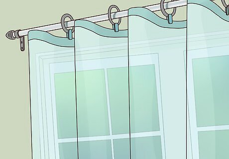 Put hooks into every fourth pocket along the top of the voile. Most curtains have small pockets or holes running along the top of them. Place a hook in the first pocket on one side of your curtain, and then add another hook every 4 pockets after that. Work your way across the voile until you reach the other side of the curtain. You can buy curtain hooks from any home goods store. If your voile curtain doesn’t have holes or pockets, then it will have an area on top where you can easily slide the curtain rod through it.