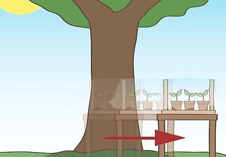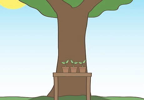 Place a small table under a tree or in another shady part of your outdoor space to harden off seedlings at first. Set plants outdoors on the table for an hour or 2 at the beginning of the hardening off process. Put the plants outdoors during mid-day, when the sun is at its warmest.