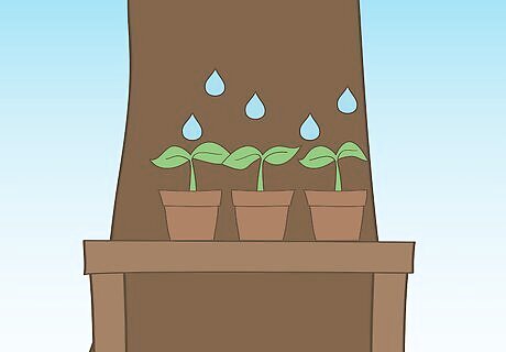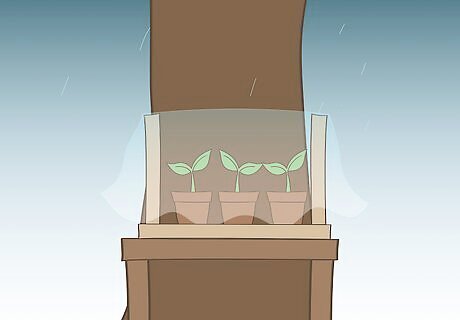 Drape a plastic row cover over the seedlings when you to protect them from any harsh rains. You don't need to protect the seedlings from a light drizzle or mist.