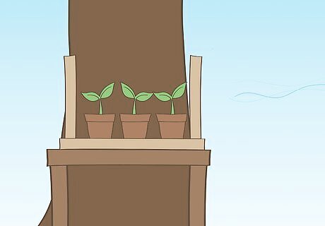Protect the seedlings from wind with a wooden board. Set the board upright in front of the seedlings when you set plants outdoors. The board should block the wind, so make sure you position it correctly.