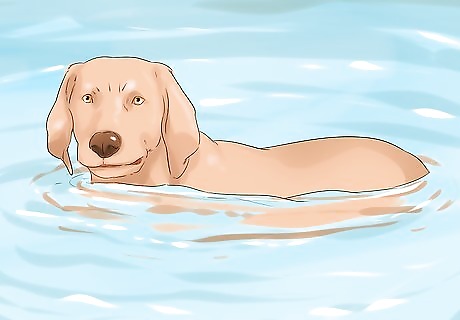 Exercise with your Weimaraner. In addition to playing, exercise will be a great outlet for your Weimaraner’s energy. If you live near water, let your Weimaraner go swimming when the water is warm. When the weather is nice, go for a long hike in the woods. Long, brisk walks are also a good idea. If there’s a beach close by, let your Weimaraner run on the beach.