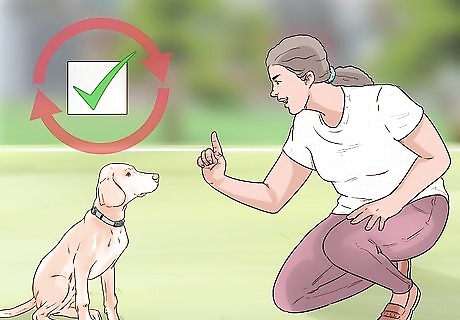 Be firm, gentle, and consistent. Weimaraners need clear, solid leadership so they know their boundaries. Your Weimaraner will be happy when it knows exactly what to do and what not to do. Leadership should not be harsh, though. Harsh leadership will make a Weimaraner wary and fearful, making the training very difficult. A Weimaraner needs lifelong training so it always knows the right thing to do. When you give your Weimaraner commands, say them only once in a clear, authoritative voice. Do not yell. If you see your Weimaraner misbehave, do not punish or yell at it. Instead, firmly say ‘No!’ and do not reward the behavior.