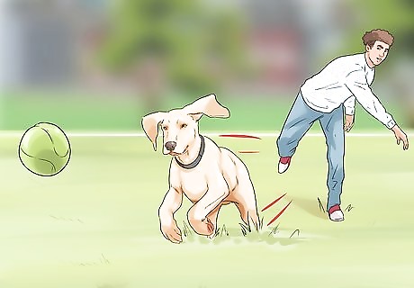 Give your Weimaraner lots of play and exercise. Weimaraners need a lot of daily play and exercise to stay happy. Because Weimaraners love people so much, your Weimaraner will want to play and exercise with you. Block off at least an hour each day to play and exercise with your Weimaraner. Play and exercise will keep your Weimaraner mentally stimulated, which is important for happiness.