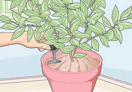 Position your camera inside a houseplant to keep an eye on your home. Place your camera inside bundles of branches or stems, camouflaging it inside of the most dense area. You can also use a small, flexible tripod mount and wrap that around a sturdy stem of your plant. Also arrange the leaves around the camera so it is blended into the plant but still able to record clearly. When you place your camera, make sure the camera is covered but the lens is not obstructed. This is especially helpful for keeping an eye on possible intruders.