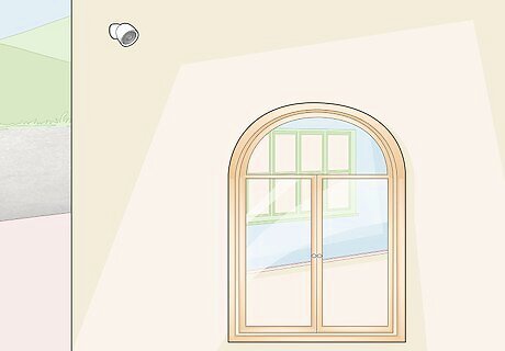 Place security cameras at off-street windows for extra protection. Tuck these in corners so they go unnoticed at first glace. Common break-in locations include rear windows, so the burglar cannot be seen from the street. Drill the mounting plate above a window outside so you can record areas that otherwise may go unseen. You can also hide your camera near your off-street garage or driveway, if you think intruders would go back there.