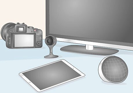 Hide your camera in plain sight if you are a gadget-lover. Sometimes the best hiding places are where you’d least expect them. If your camera is surrounded by something that looks similar, then it will appear invisible. Your eye will focus on the familiar items, and the hidden one will blend into the background. For example, you can place your camera on your desk and surround it with other technology, like a bluetooth speaker, a computer router, or a tablet.