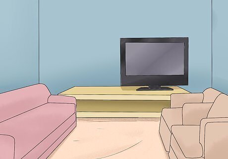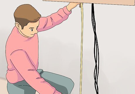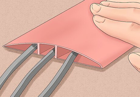 Purchase specialised cable covers. Cable covers are strips of plastic that can be attached to the wall using screws or double-sided adhesive. you'll find these at your local hardware store. Depending on the kind you buy, you can either lay the cover on top of your outstretched TV cables or pull your TV cables through the chamber. Cable covers are available for walls, floors, and corners so you should be able to find exactly what you need, whether you have a wall-mounted TV or a TV cabinet on the floor.