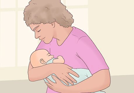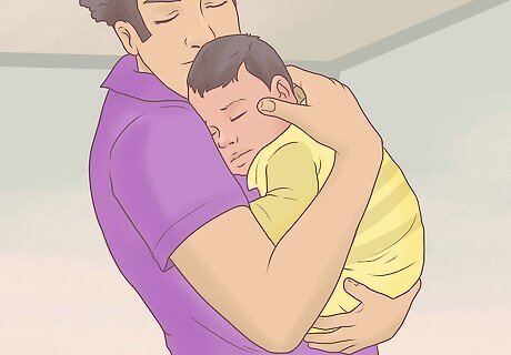 Shift the infant’s weight to lean against your shoulder. Tilt the baby slowly, positioning the side of their head against the front of your shoulder. Allow your shoulder to be a cushion as you shift the infant’s weight towards you. Next, use your chest as a prop to hold up the rest of the baby. This method allows the baby to hear your heartbeat, which can be very comforting to the child.