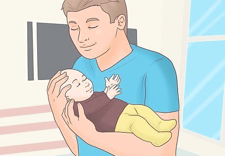 Rest the infant’s neck in the crook of your arm. Position the baby so their neck is completely cradled and supported by center of your elbow. At this point, make sure that both of your arms are overlapping. If the baby seems uncomfortable, adjust either arm accordingly. If you choose to walk around with the baby, keep your arms locked in a rigid position to support the infant.