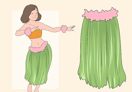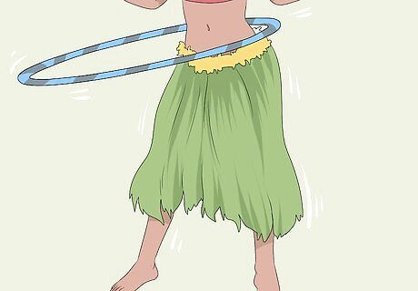 Dance with grass skirts. Grass skirts are traditional Hawaiian apparel. You can make or buy the grass skirts ahead of time, or make them as a group activity. It would be extra fun if you can find someone who can teach you all a few hula moves. Play the music and dance the night away.