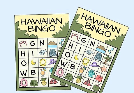 Play Hawaiian bingo. Make a beach or Hawaiian-themed Bingo board for your guests. Use words associated with Hawaii, such as luau, hula, and island. Call out the terms and have your guests mark them down if they have them on their card. Choose a winner based on the first person to get a row or column, or even their entire board marked off.