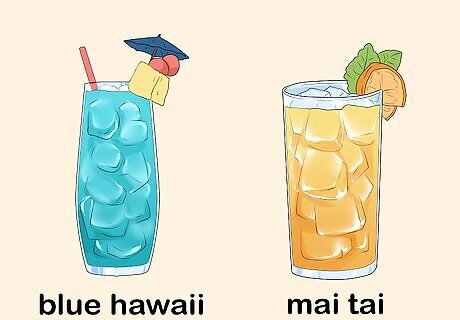 Offer Hawaiian drinks. Cocktails such as a Blue Hawaii or a Mai Tai would be perfect for your adult guests. For children, offer tropical juice, like pineapple, or water infused with fruit. Garnish the drinks with fruit or paper umbrellas. You can even serve them in coconut halves to take your theme all the way. Any Tiki-style drink will complement a Hawaiian-themed party really well.