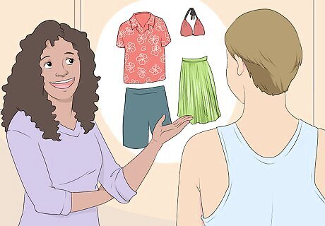 Ask your guests to dress for the theme. It won't be much of a stretch to ask your guests to wear their swimsuits, sundresses, or shorts. Hawaiian-style (flower printed or "island" themed) shirts, board shorts, or skirts are easy to find during the summer. Ask your guests to wear sandals, or provide them with inexpensive flip-flops decorated with fake flowers.