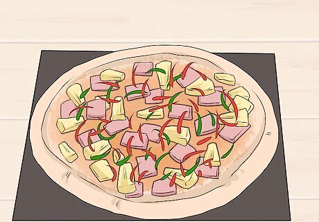 Make Hawaiian pizzas. Ham and pineapple are the traditional toppings for a Hawaiian pizza. Create a station so guests can make their own pizzas, or make them ahead of time. You can even order pizza if you don't want to spend your time cooking.