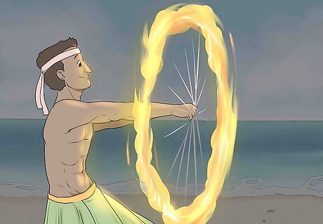 Hire fire dancers. If you have the space, and the budget, consider hiring fire dancers for your party. Hawaiian fire dancing is a tradition dating back to ancient times, originating after volcanoes erupted and spread lava over the islands. Hiring Hawaiian fire dancers will give your party an authentic island feel.