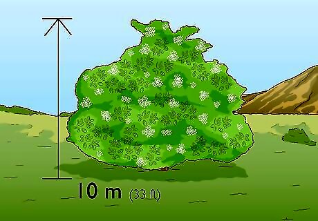 Find scraggly trees with clusters of small cream-colored flowers. Elder trees are technically shrubs, so they don’t have a single main trunk as trees do. Look for bush-like trees with several trunks that come up out of the ground, each with many branches that give it a scraggly look, and that have clusters of creamy-white flowers sprouting from them. Elder trees can grow up to about 10 m (33 ft) tall, although some remain as small as 10 m (33 ft) and look much more like shrubs than trees.
