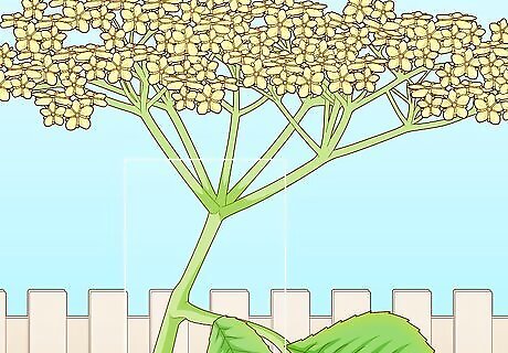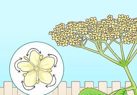 Examine the flowers to see if they are star-shaped. The flowers themselves are shaped like 5-pointed stars. The petals are very small and rounded, not pointy. Pyracantha is another type of plant with star-shaped white flowers that can be confused with elderflower. However, the flowers are bigger and the clusters are more tightly bunched. Look at some pictures online of the two to help you tell the difference.
