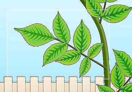 Look to see if the leaves have serrated edges and are in clusters of 5-7 leaves. Each twig has 1 leaf at the very tip, and 2-3 pairs of leaves below it along the sides. Count the leaves on the twig below the flowers to make sure there are 5-7 in total, then look at the edges of the leaves closely to see if they are serrated. The twigs with leaves branch out laterally from the main stems below the flower clusters. The leaves may or may not have a light fuzz on the underside.