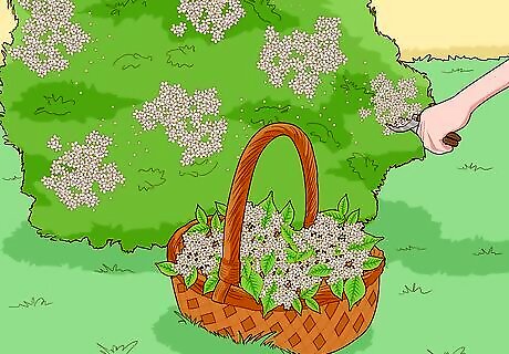 Take just a few flower heads from each tree to leave plenty for animals. Elderberries, the berries that elderflower turns into, are an important food source for many animals. Harvest only as much as you will use and take the flower heads from several different trees if possible, so that you leave behind enough for animals as well as any other foragers. Always be conscious of the local ecosystem and never strip an entire area of elderflower when foraging. Be respectful of wildlife and understand that other species may depend upon elderflower as a food source.