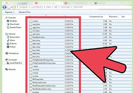 Unzip Modloader with your archiving utility. Right-click Modloader, and then select Open with → WinRar (or another archiving utility). These are your .class files. Keep this file window open.