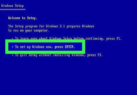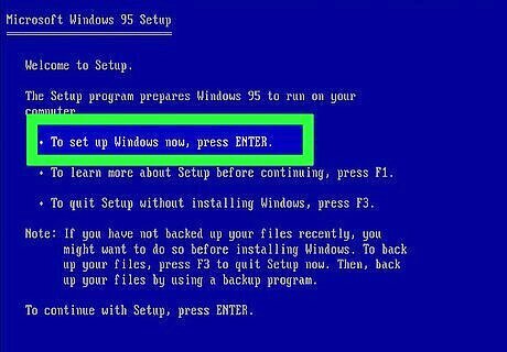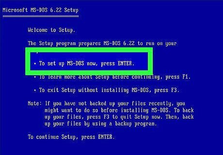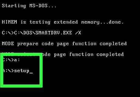 Put the MS-DOS installation floppy disk or CD into the computer. Check that you have the correct MS-DOS version for installing the version of Windows that you require. This can be done with a quick search on a search engine.