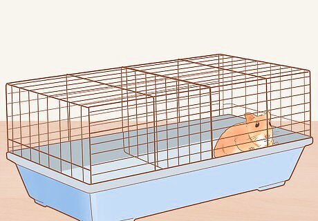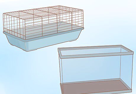 Purchase a plastic or glass cage. Select a cage that is at least 6 inches (15 cm) high and 24 inches (61 cm) long. Look for a cage that has a solid base, walls, and roof to ensure that the hamster won’t gnaw through the material and escape. Make sure the cage has plenty of small ventilation holes and is large enough for the hamster to move around freely. Purchase a hamster cage from a pet store or search for a second-hand cage online. Purpose-designed hamster cages work well, as they ensure that the hamster won’t be able to gnaw through the material. If you choose a glass tank, keep it out of direct sunlight so the temperature doesn’t rise inside.