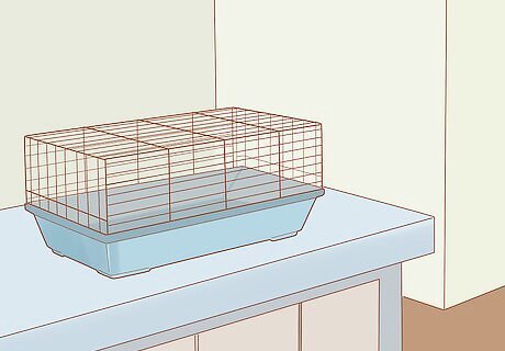 Put the hamster cage in a temperate, quiet, safe location. Place the cage in an area that is not exposed to extreme temperatures and is out of the direct sun. Avoid placing the cage in a cold basement or in a hot conservatory. Prepare a safe area for the cage where it will not be knocked over by children or pets. Shaded bedrooms and living rooms are good places to put the hamster cage.
