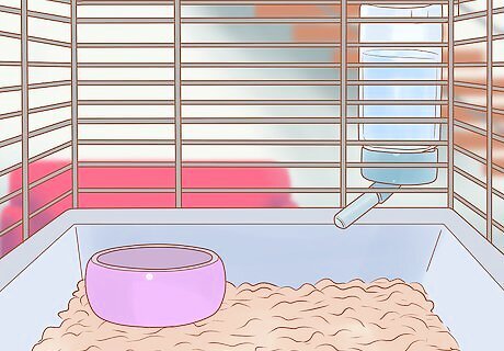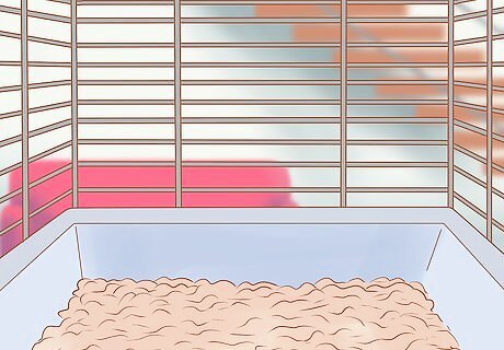 Put 2.5 inches (6.4 cm) of absorbent and nontoxic bedding in the cage. Shredded paper and processed corn cobs are good bedding materials, as they are dust-free and don’t irritate the hamster's skin. Spread the substrate evenly over the base of the cage to give the hamster something to nestle in. Avoid using cedar chips, fresh pine materials, and printed newspaper, as these can be toxic to hamsters.