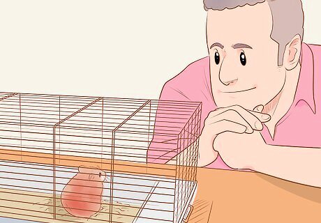 Leave your new pet undisturbed in its cage for 4 days to help it get comfortable. Keep the area around the cage quiet and peaceful for the first 4 days. This helps to calm the hamster and encourages it to adjust to its new home. Avoid touching the hamster during this initial period, as this can scare it. Keep loud pets out of the hamster's room during the first 4 days.