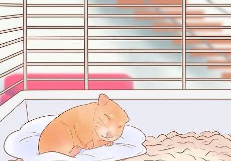 Place a light cloth over the cage for the first 2 days. This gives the hamster a sense of privacy and helps it to adjust to its new surroundings. Choose a cloth that is thin enough to be able to faintly see through, as this allows the hamster to distinguish between day and night. Muslin and linen cloths work well for this purpose. Remove the cloth from the cage after 2 days.