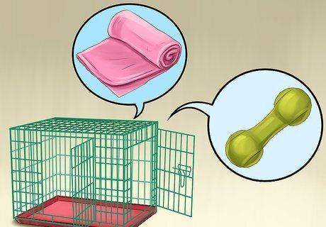 Make the crate comfortable. Make the crate inviting and comfortable by lining it with a soft blanket, and leave it out with the doors open so that your puppy can explore it on its own. Use treats and toys to encourage it to go inside. Start feeding your puppy meals inside the crate to increase its comfort and positive associations with it.
