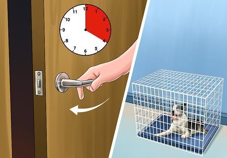 Leave the house. Keep training your puppy by leaving it in the crate alone in a room for longer and longer periods of time. Once you hit the 30 minute mark, try leaving the house with it crated. Lead it into the crate about 15-20 minutes before you step out so it doesn't start to associate time in its crate with you leaving. Be calm and subtle about leaving and returning, to avoid getting your puppy riled up.
