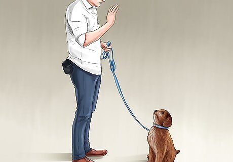 Get your puppy to stay. Once you've taught your puppy how to sit on command, you can teach it to stay. Have your puppy sit, with its leash attached, and turn around to face it. Holding the leash slack, gently back up while holding your hand (palm up) to your puppy's face, saying "stay". If your puppy gets up before you say a release word (e.g. "ok" or "go"), gently repeat the step.