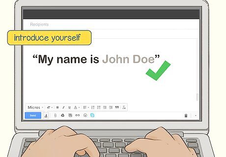 Introduce yourself. Your first sentence should introduce yourself to your recipient. This allows them to associate a name with the rest of the email message. "My name is..." Give your title if applicable. If you have multiple titles, don't list them all out, just the most important or relevant one.