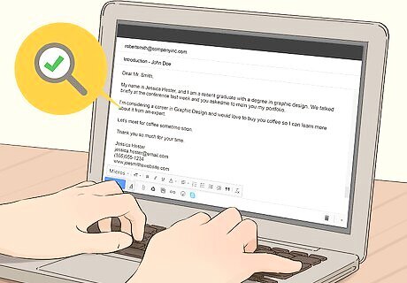 Proofread the email. Before clicking the "Send" button, take some time to read through your email a couple times, correcting any errors that you find along the way. Since this email will likely be your first contact with the recipient, you need to leave the best impression possible. Misspellings and grammatical errors will quickly make your email look much less professional.