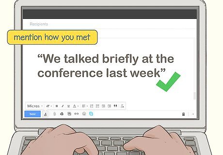 Share a common interest. This can help you relate to your recipient, and keeps your business emails from seeming too cold. In order to determine mutual interests, you may need to do a little research on the recipient. Possible research areas include Facebook, Twitter, and LinkedIn. Make sure you let the person know where you found this mutual interest, otherwise you'll come off as a stalker. If possible, try to keep the mutual interest business-related, such as something in your field or a professional passion you both share.
