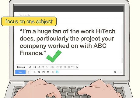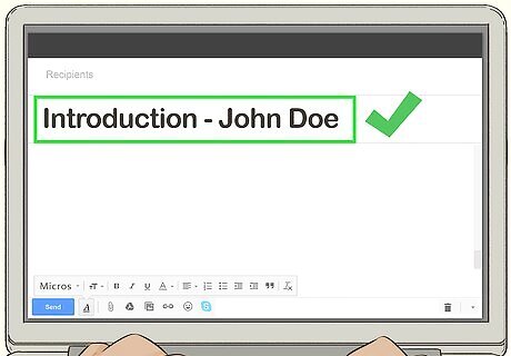 Make your subject line clear. Your recipient should have a good idea about what the email is about before they even open it. Keep it short as well; a long subject can be cumbersome. For an introductory email, it is usually perfectly acceptable to write "Introduction - Your Name".Tip: Make sure to write the subject line first! A common mistake is to save the subject line for last, which can lead to forgetting to write it at all. Mobile devices will typically only show about 25-30 characters of the subject, so keep it short.