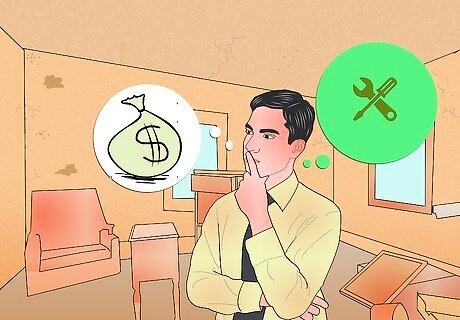 Choose the property with the most potential for profit. The best type of property to buy is one that has a good roof and foundation but has been mismanaged and not cared for. Look for properties that have old carpet, peeling paint, cracked tile, dirty grout, leaking faucets, burned light sockets and broken windows. You can pay a handyman to fix these at about $40.00 in labor for each defect. You will save even more money if you learn to make some of the repairs yourself. Take an adult education class or get training from a friend or family member who has carpentry, plumbing or electrical skills. You can also check Youtube for skills training videos on just about anything.