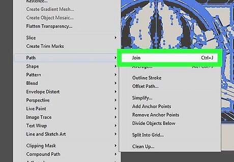 Click Join on the Path menu. This will instantly join together all the vectors in your marquee selection. You can now edit this whole selection as a single vector line. Alternatively, press Ctrl+J (Windows) or ⌘ Cmd+J (Mac) on your keyboard. This is the keyboard shortcut for the Join function. It will join and connect all your selected vectors.