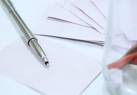 Write it down on a piece of paper. Find scraps of paper suitable for writing a small message on. You could go to the effort of making a pile of ready-made pieces of paper (this can be a good motivator to keep doing this each day) or you could simply rip a piece of paper from a napkin, junk mail, or similar, as needed. If you can't find a piece of paper, write your note on your phone. Send a text message or e-mail to yourself and remember to transcribe it later, so you can put a physical note in the jar.