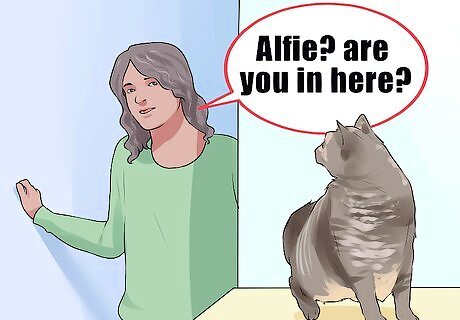 Announce your presence. Older cats can be hard of hearing or otherwise easily startled. You can prevent a nervous reaction in your cat by calling ahead into a room before you enter. You might say, “Alfie, are you in here?” You might place a bell on door handles in your home.