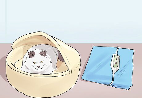 Make your home safe and cozy. If your cat is having trouble getting around, stop to make sure they can access everything they need. Also, providing your cat with a nice, warm place to sleep is a great way to keep them feeling good. Provide a stool that helps your cat access a favorite sleeping spot Provide a cozy cat bed Set up a heating pad to help keep your cat warm Keep the temperature in your house at a comfortable level