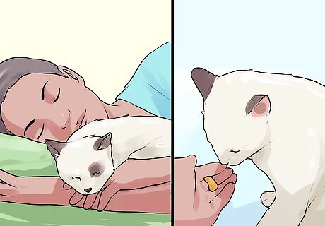 Shower your cat with love! Cats are most happy when they receive genuine attention. Continue to show love to your senior cats in the same ways you always have. You can show your cat love by: Petting. Taking naps together. Brushing your cat's fur. Providing treats.