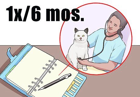 Schedule more frequent visits to the vet. Just like humans, older cats are prone to more ailments. As such, frequent vet appointments can help detect problems early on. Consult your vet to determine how often to bring your cat in. As a general rule, take your cat to see the vet about every six months.